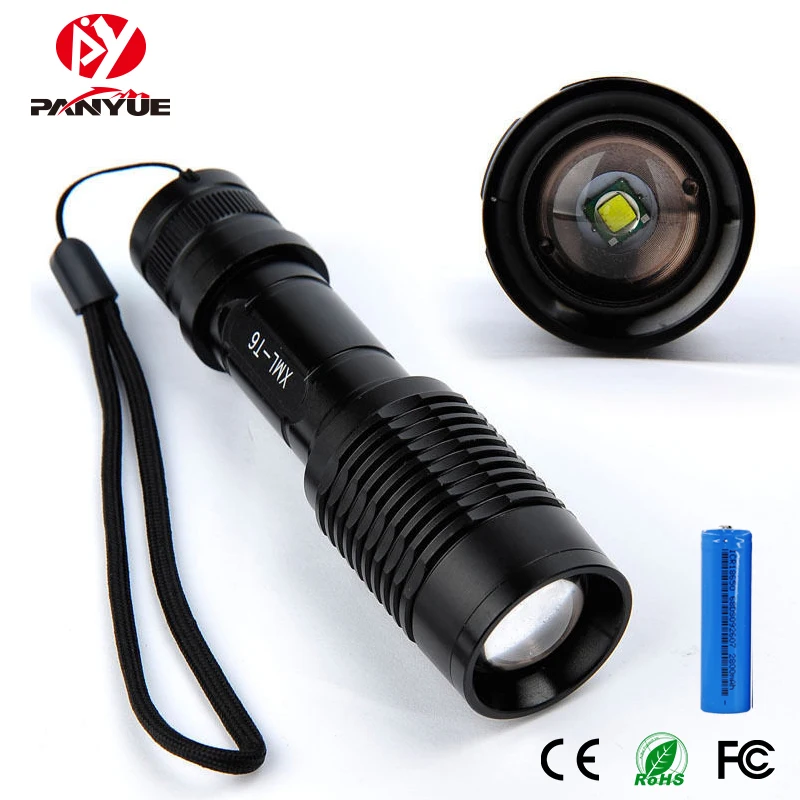 PANYUE Portable LED Flashlight LED Torch Zoomable Flashlight 1000LM E7 T6 5 Mode Light with 18650 r