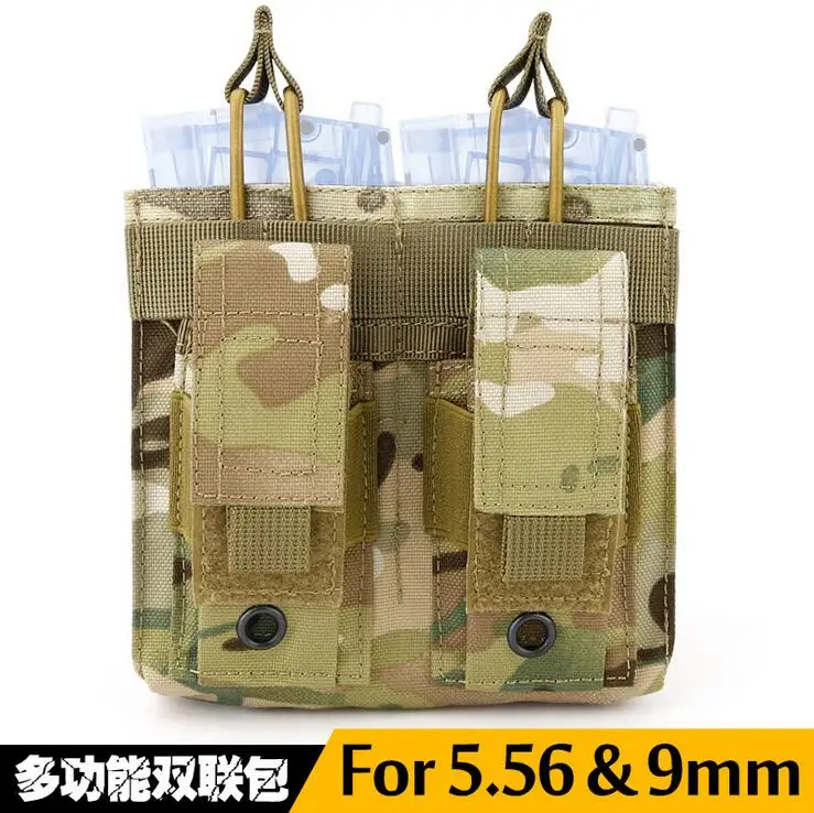 Tactical Two Magazine Pouch Military Army MOLLE system for 5.56 & 9MM Hunting Utility Flashlight Ba
