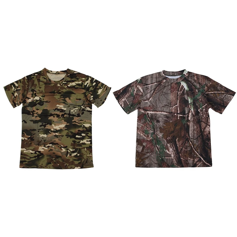 2 Pcs L New Outdoor Hunting Camouflage T-Shirt Men Breathable Combat T Shirt Dry Sport Camo Camp Te